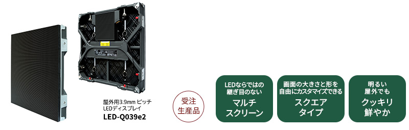 LED-Q028e2の画面輝度は4,000cd/m²、コントラスト比は7,000:1、LED-Q039e2/LED-Q048e2/LED-Q059e2/LED-Q078e2の画面輝度は5,500cd/m²、コントラスト比は6,000:1。外光に照らされる屋外でも、明るくメリハリのある映像を映し出します。