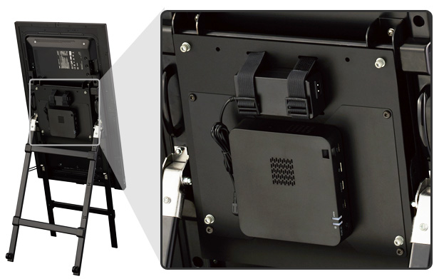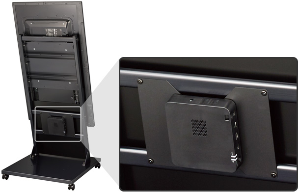 ディスプレイの場合、設置空間に合わせてさまざまなサイネージスタンドを選択でき、スタイリッシュに情報を発信できます。
