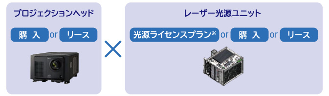 プロジェクションヘッド本体に、レーザー光源ユニット(別売オプション)を組み合わせて運用します。