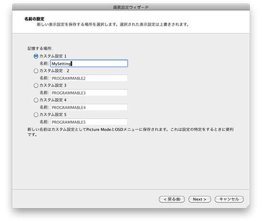 ここで入力した名前は、MultiProfiler®やOSDの表示に使われるため、保存した設定を識別しやすくなります。半角英数字13文字まで設定できます。