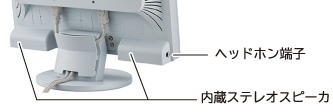 ディスプレイ本体内にステレオスピーカ(出力1W+1W)を装備しており、音声入力(DisplayPort™、HDMI®、φ3.5mmステレオミニジャック)に対応します。また、ヘッドホン端子も装備しています。