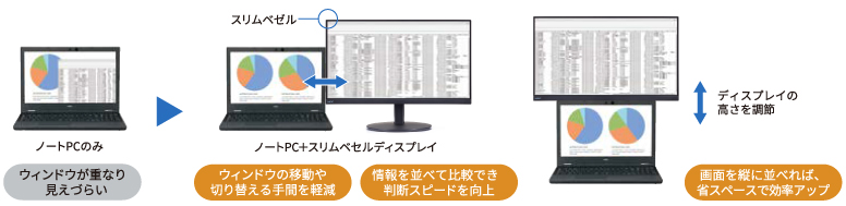 作業時の疲労度を軽減する3辺スリムベゼルディスプレイ