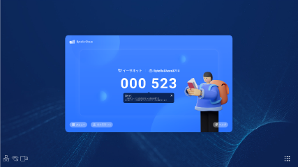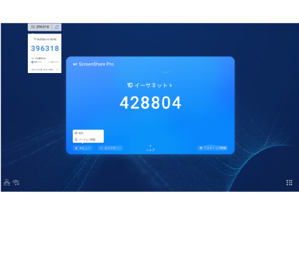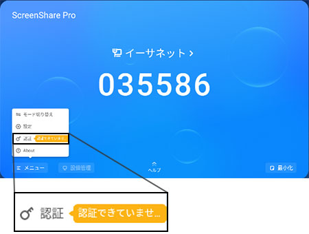 このメッセージが表示されている場合、画面共有アプリケーション「Bytello Share(旧ScreenShare Pro)」を用いた画面共有機能の使用時間が約10分間に制限されます。本機をインターネットに接続していただくことで自動的に認証が行われ、時間制限なしに継続してご使用いただけます。