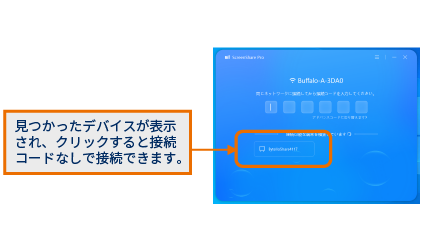 - -「ScreenShare Pro バージョン3.3以降(CB本体用・クライアント端末用それぞれ)」をご利用の場合、CB本体側で「デバイスの検索を許可」機能を有効にすることで「ScreenShare Pro」からも接続することができます。